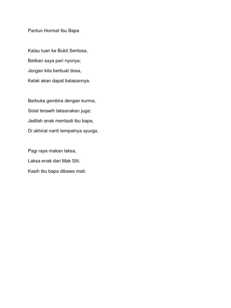Pantun Kasih Sayang Ibu Bapa / Nota Lengkap Komsas Middot Pdf Filerangkap 10 Setiap Perkara Yang Berlaku Dan Diperkatakan Orang Tentu Ada Sebabnya Rangkap 11 Menginginkan Sesuatu Yang Besar Tetapi Tidak Mempunyai